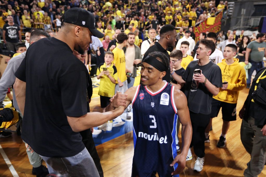 Λίγα λεπτά μετά την άφιξη της οικογένειας Αντετοκούνμπο, στην κεντρική σάλα του γηπέδου, έκανε την εμφάνισή του και ο θρυλικός για τον ελληνικό μπάσκετ και τον Άρη, Νίκος Γκάλης.