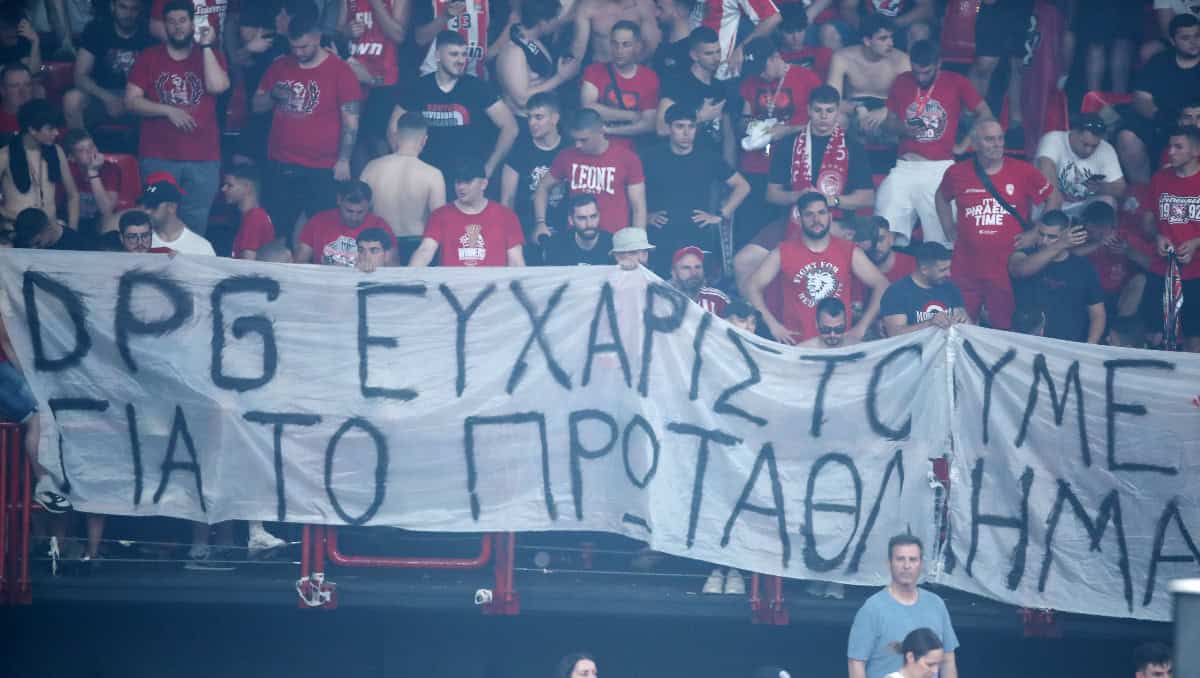 «DPG ευχαριστούμε για το πρωτάθλημα», έγραφε το πανό που ανέβασαν στο ΣΕΦ.