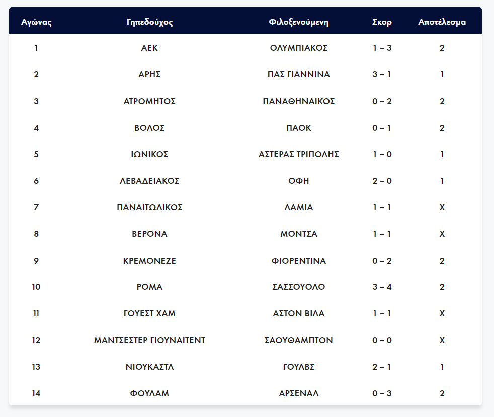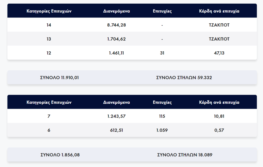 Αναλυτικά τα αποτελέσματα, η νικήτρια στήλη και η διαλογή του ΠΡΟΠΟ 11ου διαγωνισμού Κυριακής: