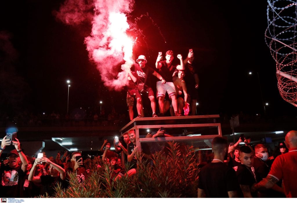 Οι φίλαθλοι του Ολυμπιακού είχαν γεμίσει από νωρίς τον χώρο του αεροδρομίου και με το που έκανε την εμφάνισή του ο Ποντένσε τον υποδέχθηκαν με καπνογόνα, συνθήματα και τραγούδια, δείχνοντας για ακόμη μία φορά πόσο τον εκτιμούν για τη μέχρι τώρα προσφορά του.