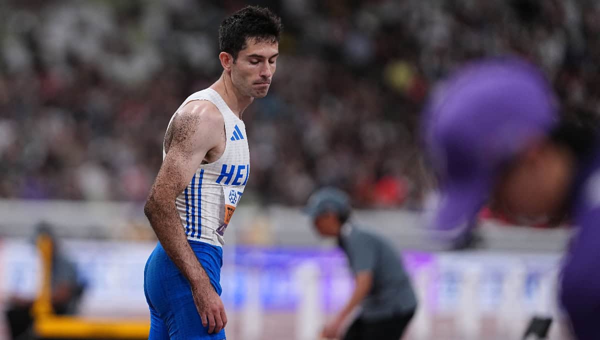 Όμως, ο Έλληνας πρωταθλητής ένιωσε ενοχλήσεις στη γάμπα την ώρα που έτρεχε για να κάνει το 2ο άλμα του. Τελικά, ο Έλληνας πρωταθλητής το έβγαλε άκυρο, χωρίς να πηδήξει και μετά η κάμερα τον έπιασε να κάνει μαλάξεις και διατάσεις στο σημείο που ένιωσε τις ενοχλήσεις. Κάτι που σημαίνει ότι δεν σκοπεύει να εγκαταλείψει τόσο απλά τον αγώνα του. Παράλληλα έκανε κάποια μίνι σπριντ για να δει αν επιμένουν οι ενοχλήσεις, ενώ μιλάει διαρκώς και με τον προπονητή του, Γιώργος Πομάσκι.