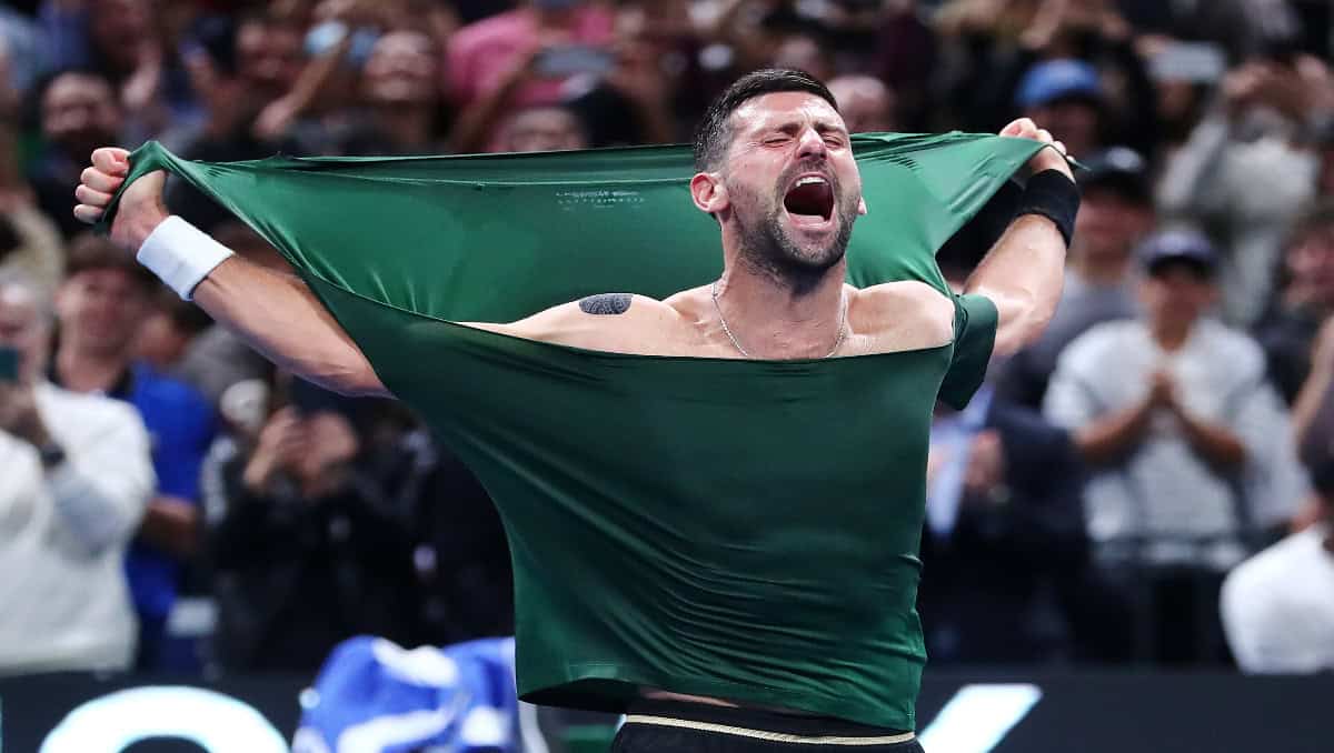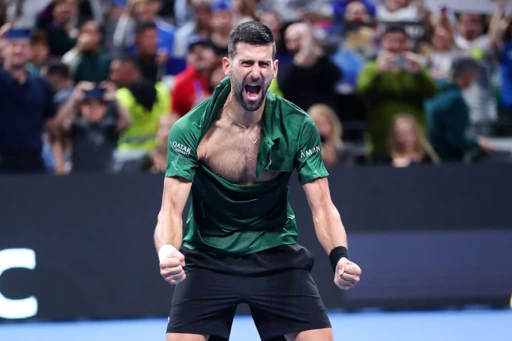 Ο Σέρβος παρά το ότι έχει σαρώσει τους τίτλους… τρελάθηκε με την κατάκτηση του τροπαίου στην Αθήνα και έσκισε την μπλούζα του μετά την επικράτησή του.