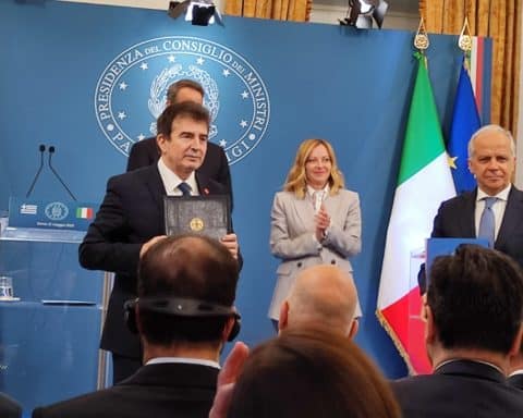 Υπογραφή Μνημονίου Συνεργασίας Ελλάδας – Ιταλίας από τον υπουργό Ανάπτυξης, Τάκη Θεοδωρικάκο και τον Ιταλό υπουργό Επιχειρήσεων και Made in Italy, Adolfo Urso