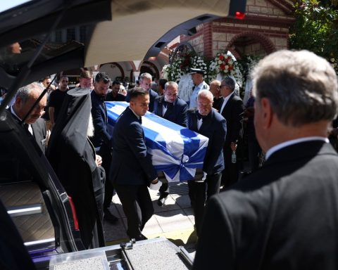 Το τελευταίο αντίο στον Πέτρο Μολυβιάτη – Τυλιγμένο με την ελληνική σημαία το φέρετρό του – Δείτε φωτογραφίες