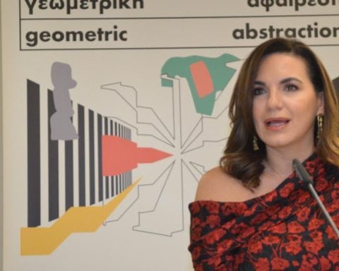 Η υπουργός Τουρισμού, Όλγα Κεφαλογιάννη, εγκαινίασε την έκθεση «Γεωμετρική Αφαίρεση: Όπυ Ζούνη, Etel Adnan, Samia Halaby, Saloua Raouda Choucair, Ebtisam Abdulaziz, Lubna Chowdhary», παρουσία του προέδρου και της αντιπροέδρου του ΔΣ του Ιδρύματος, Βασίλη και Μαρίνας Θεοχαράκη, του γενικού διευθυντή Στέλιου Βασιλάκη