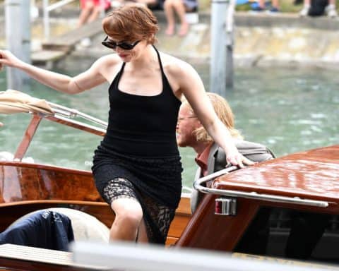 Η Lady Gaga έφτασε στη Βενετία λίγες ώρες νωρίτερα, μαζί με τον αρραβωνιαστικό της και επιχειρηματία, Μάικλ Πολάνσκι. Είναι η πρώτη δημόσια εμφάνισή του ζευγαριού μετά την επιβεβαίωση του αρραβώνα τους. Η ηθοποιός και τραγουδίστρια ήταν ντυμένη με ένα μίνι πουά σατέν