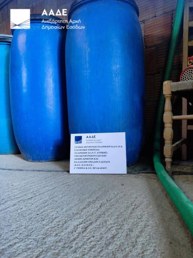 Αντίστοιχα, στο Ηράκλειο Κρήτης, η Κινητή Ομάδα Ελέγχου (ΚΟΕ) εντόπισε άμβυκα χωρίς άδεια, σε πλήρη λειτουργία και μάλιστα εκτός της επιτρεπόμενης αποστακτικής περιόδου. Κατασχέθηκαν: