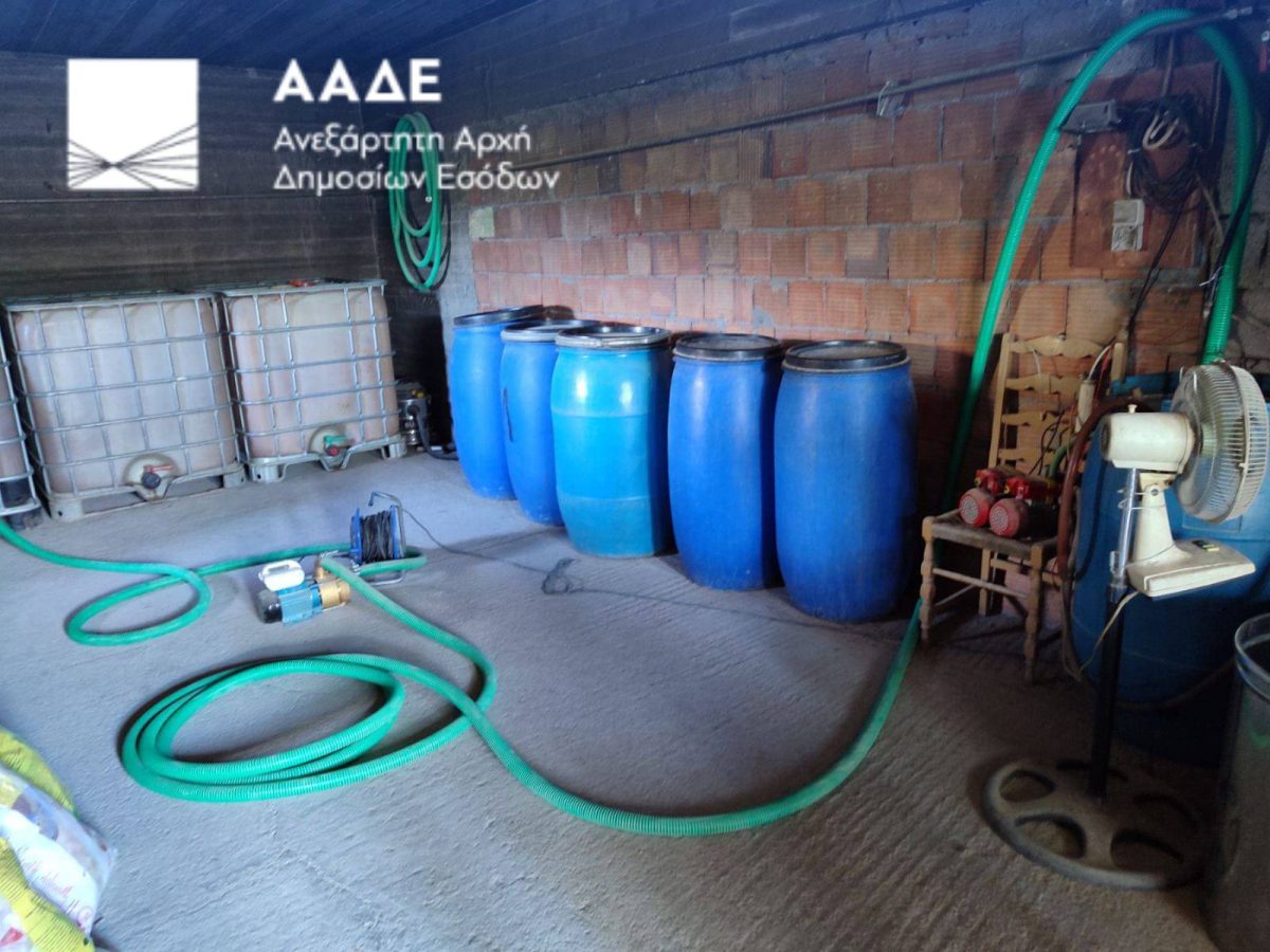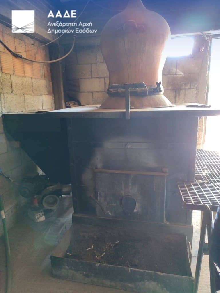 Σε κλειδωμένο χώρο εντοπίστηκε επίσης συσκευή που εκτιμάται ότι χρησιμοποιούνταν ως άμβυκας για παράνομη απόσταξη.