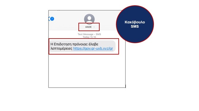 Με αφορμή παραπλανητικά μηνύματα (SMS), σχετικά με δήθεν χορήγηση επιδότησης πρόνοιας, που έχουν λάβει στα κινητά τηλέφωνά τους πολίτες, με φερόμενο αποστολέα την ΑΑΔΕ (AADE), η Ανεξάρτητη Αρχή Δημοσίων Εσόδων εφιστά την προσοχή στα εξής: