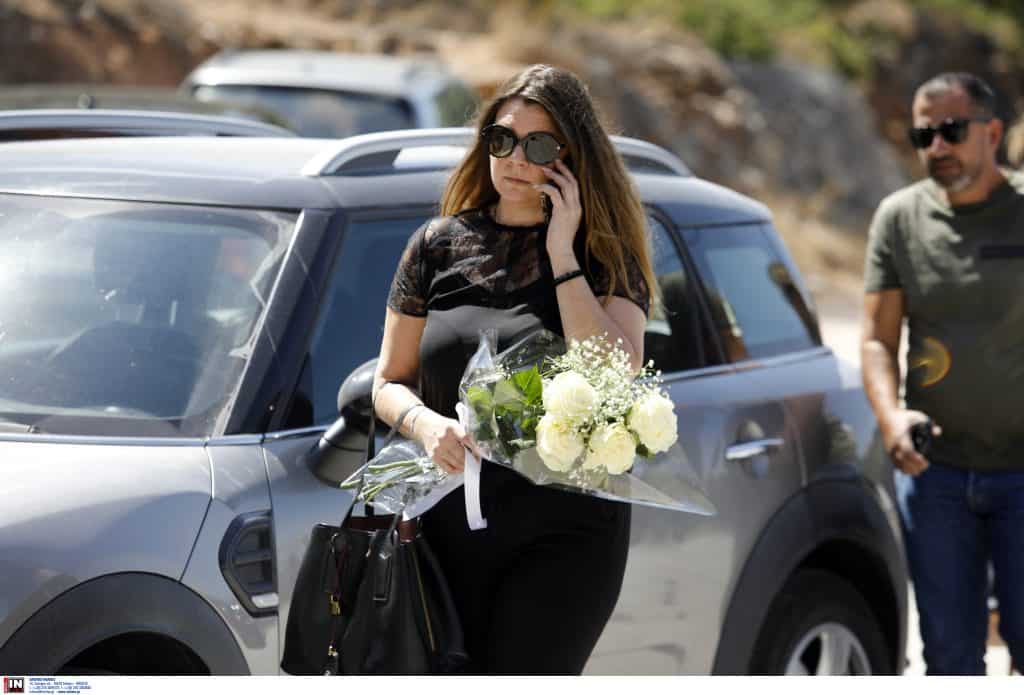 Στην εκκλησία έφτασε ο σύντροφος της εκλιπούσας μαζί με την κόρη του Μελίνα Νικολαΐδη και η στενή της φίλη, Κατερίνα Καινούργιου κρατώντας ένα λευκό τριαντάφυλλο.