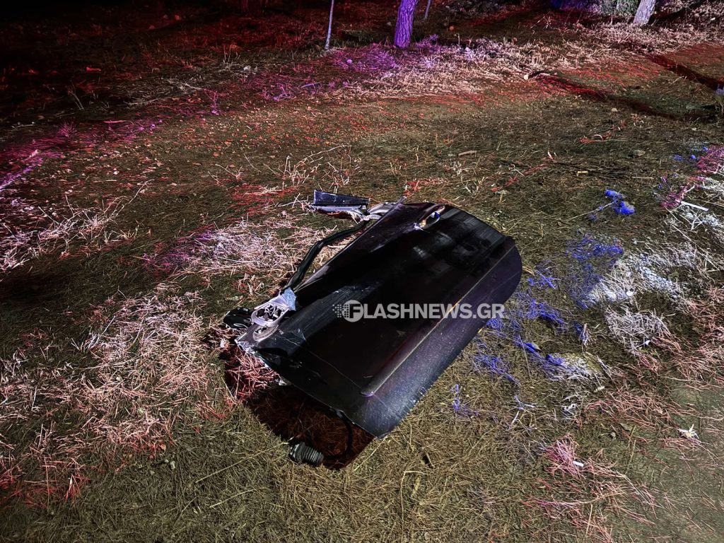 Όπως φαίνεται στις φωτογραφίες του flashnews.gr, το αυτοκίνητο έγινε άμορφη μάζα, ενώ έφυγε τελείως η οροφή του και η πόρτα του οδηγού βρέθηκε 15 μέτρα μακριά.