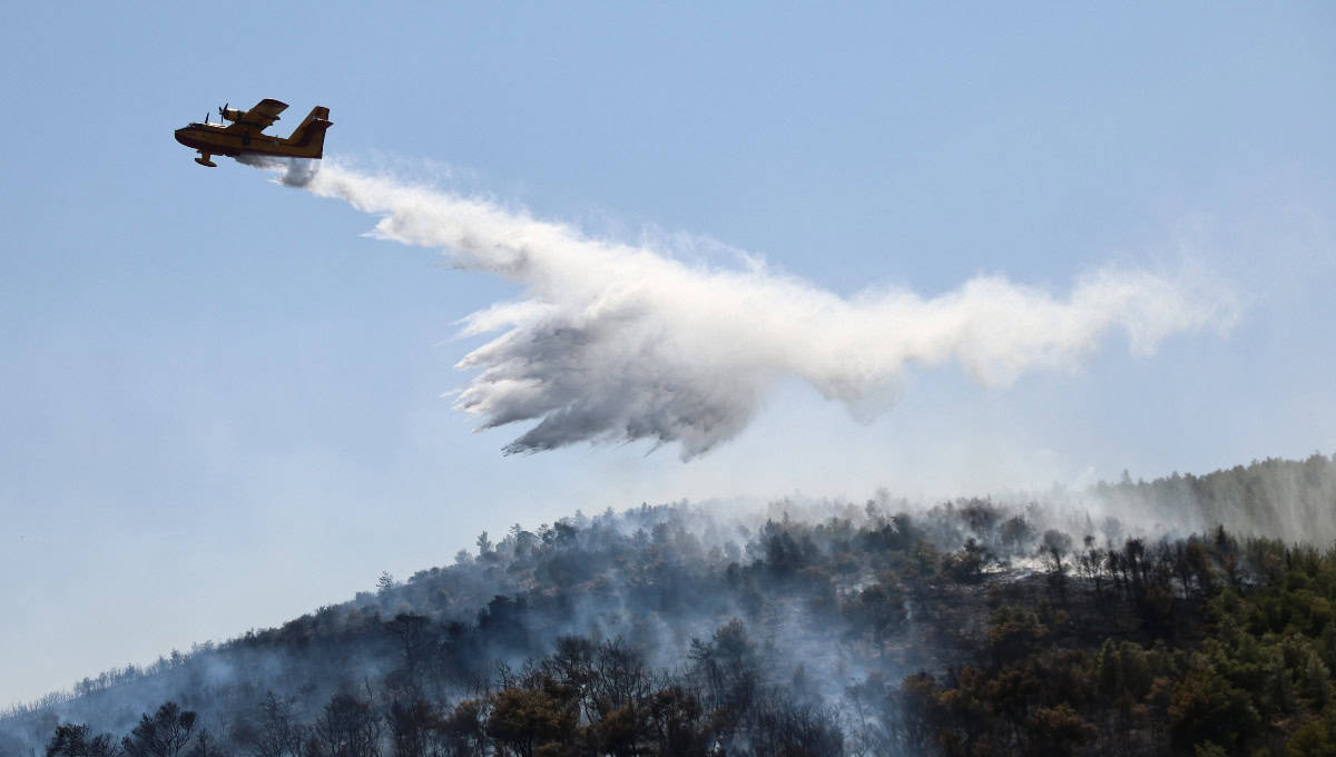 Για την κατάσβεσή της κινητοποιήθηκαν 6 πυροσβέστες με 3 οχήματα, 2 αεροσκάφη και ένα ελικόπτερο.