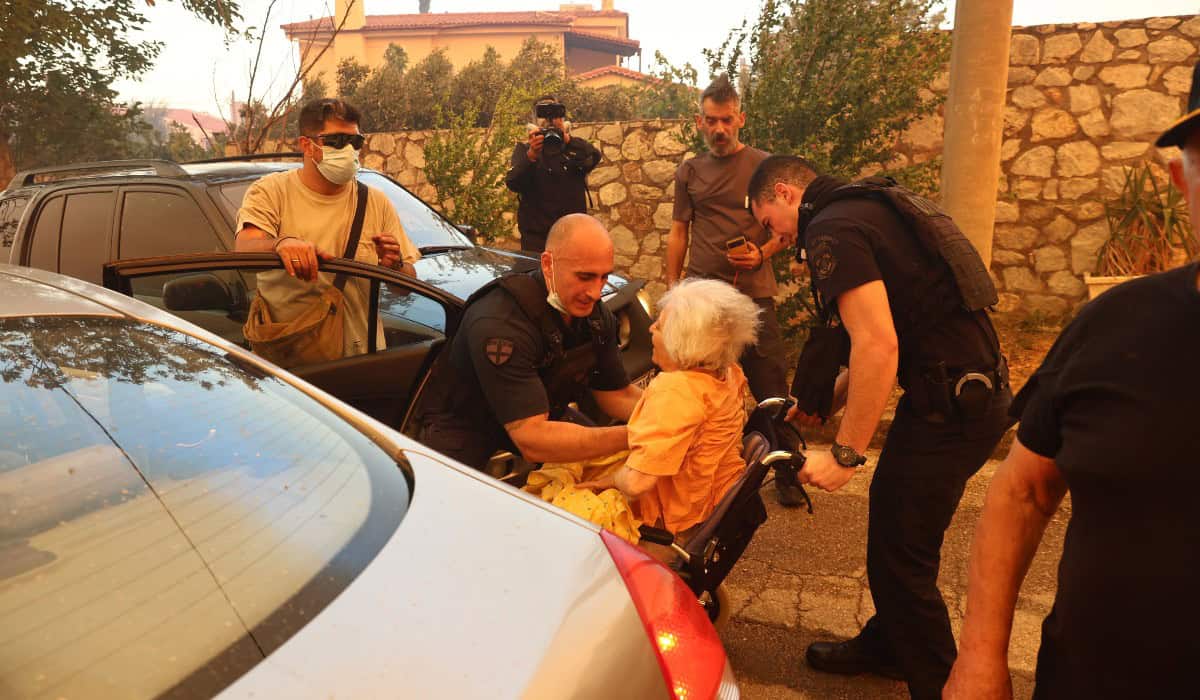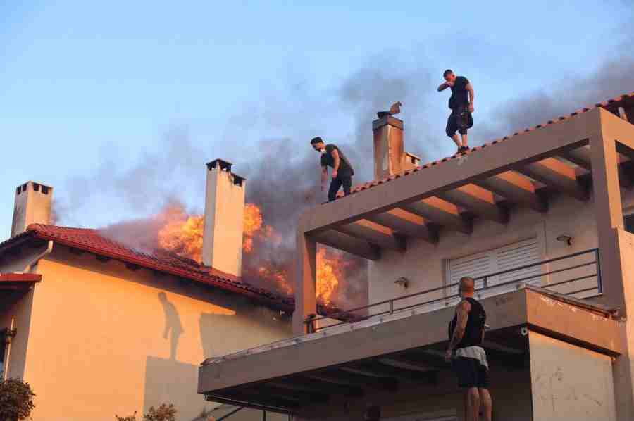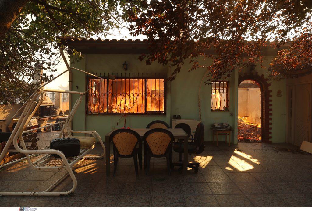 «Έχει ζώσει τώρα η φωτιά από την πίσω πλευρά το Κρυονέρι και οι άνεμοι γύρισαν σε βορειοανατολικοί. Η φωτιά έχει κάνει ένα ολόκληρο ημικύκλιο… Έχουν πάρει όλα φωτιά», περιέγραψε η Ελένη Μπουγά, δείχνοντας τις τεράστιες φλόγες να καίνε σπίτια και χορτολιβαδική έκταση στο Κρυονέρι.