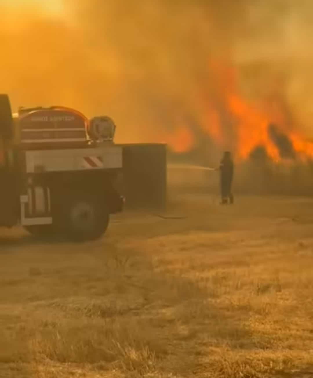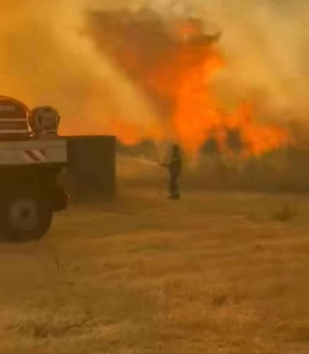 Όπως ανέφερε, η πυρκαγιά είναι σε πλήρη εξέλιξη σε δύο μέτωπα, με το δεύτερο να βρίσκεται στα όρια του οικισμού Δροσοπηγής, όπου απειλούνται σπίτια και έχει καεί ένα αυτοκίνητο.