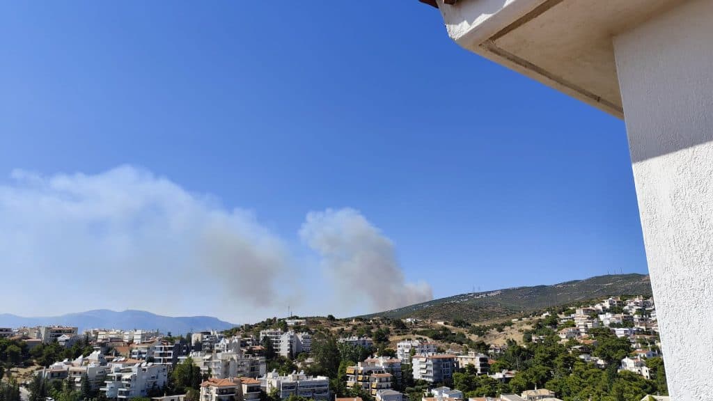 Όπως έγινε γνωστό από την Πυροσβεστική, η φωτιά εκδηλώθηκε γύρω στις 15:25 και χαρακτηρίζεται δύσκολη καθώς εξελίσσεται σε μικτή ζώνη δάσους και οικιστικού ιστού. Η πυρκαγιά έχει αναπτύξει δυναμική και έχει λάβει μεγάλες διαστάσεις λόγω των ισχυρών ανέμων που πνέουν, ενώ υπάρχουν αναφορές ότι σπίτια έχουν υποστεί ζημιές και ορισμένα έχουν παραδοθεί στις φλόγες.