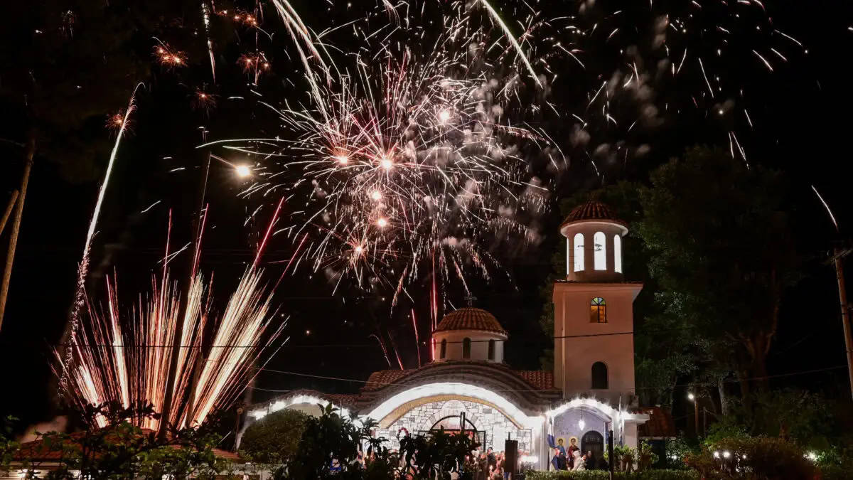 Στο χαρμόσυνο «Χριστός Ανέστη» ο ουρανός φωτίστηκε από πολλά πυροτεχνήματα που έκαναν τη νύχτα μέρα.