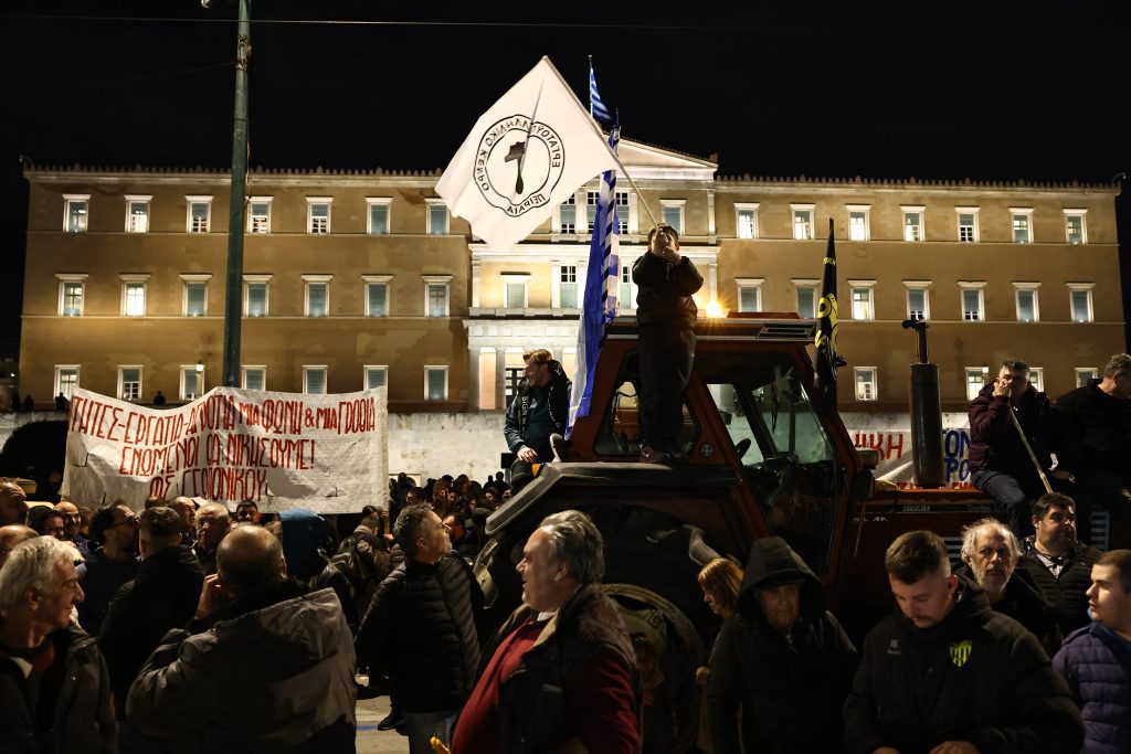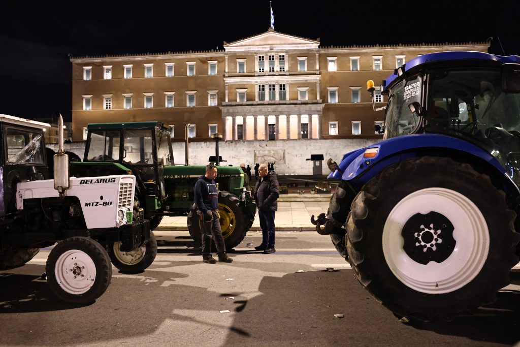 Αγρότες και κτηνοτρόφοι από πολλές περιοχές της χώρα βρίσκονται από χθες στο Σύνταγμα, παρατάσσοντας τα τρακτέρ μπροστά από τη Βουλή. Η κινητοποίηση κορυφώθηκε το απόγευμα της Παρασκευής, με περισσότερα από 40 τρακτέρ και πάνω από 2.500 διαδηλωτές να συμμετέχουν.