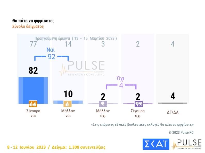 Σύμφωνα με την δημοσκόπηση της Pulse, πάνω από τους 9 στους 10 ψηφοφόρους είναι αποφασισμένοι να πάνε στην κάλπη, στις εκλογές της 25ης Ιουνίου.