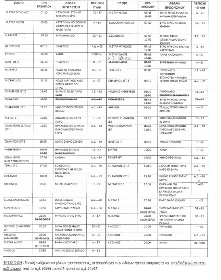 Πιο συγκεκριμένα, στις 16:00 το Blue Star Delos για Πάρο, Νάξο (όχι για Σαντορίνη). Μάλιστα, όσοι θέλουν να ταξιδέψουν στην Αμοργό, θα χρειαστεί να αποβιβαστούν στη Νάξο, να διανυκτερεύσουν και από εκεί θα πάρουν καράβι αύριο για την Αμοργό με δικά τους έξοδα.