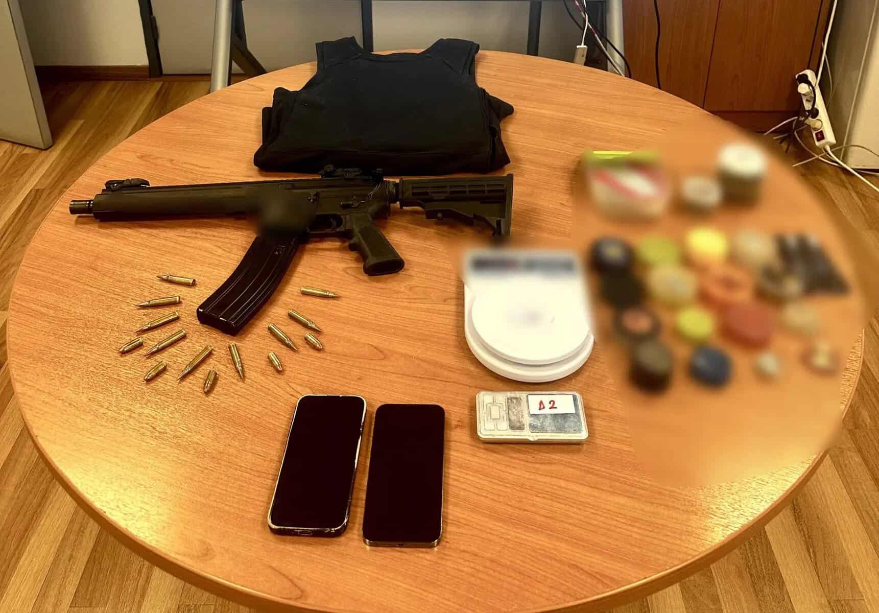 Πιο αναλυτικά, σύμφωνα με την ΕΛΑΣ, αφού κατέστη δυνατός ο εντοπισμός των κατηγορούμενων και η διακρίβωση της οικίας όπου διέμεναν σε περιοχή των Θρακομακεδόνων, διαπιστώθηκε να κατέχουν εντός αυτής πολεμικό τυφέκιο, ναρκωτικά, πλαστές πινακίδες, στρογγυλές σφραγίδες με εντυπώματα δημόσιων υπηρεσιών και άλλα αντικείμενα. Επιπλέον για τον ένα κατηγορούμενο προέκυψε ότι δεν είχε δηλώσει μεταβολή της κατοικίας του, ως όφειλε λόγω επιβληθέντων σε αυτόν περιοριστικών όρων.