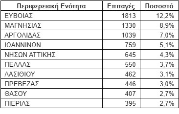 Ενδεικτικά, οι 10 περιφερειακές ενότητες με τον μεγαλύτερο αριθμό ενεργοποιημένων επιταγών κατά το διάστημα 1-31 Μαΐου: