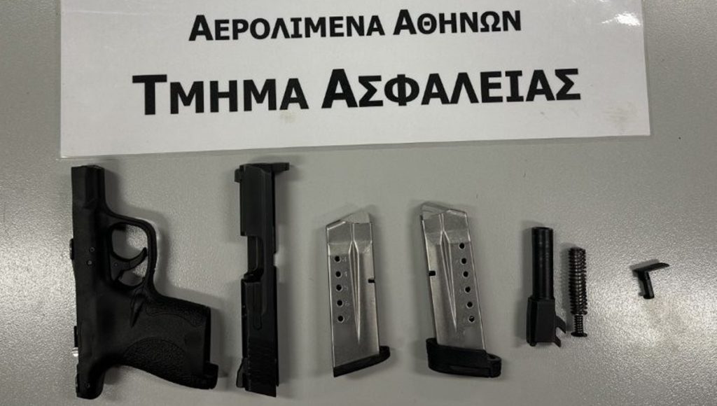 Κατά τον ακτινογραφικό έλεγχο των αποσκευών του από μηχάνημα X-ray, εντοπίστηκε και κατασχέθηκε αποσυναρμολογημένο πιστόλι καθώς και -2- γεμιστήρες, ενώ ανωτέρω αστυνομικοί συνέλαβαν τον 60χρονο επιβάτη.