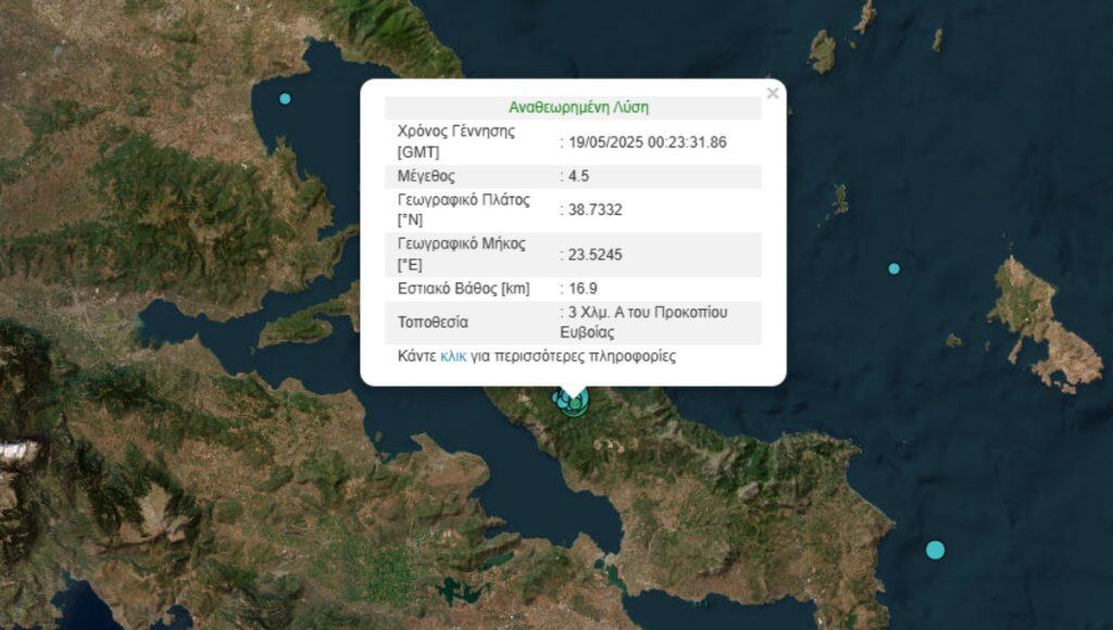 Είκοσι λεπτά αργότερα ακολούθησε νέα σεισμική δόνηση μεγέθους 3,6 της κλίμακας Ρίχτερ οκτώ χιλιόμετρα Ανατολικά-Βορειοανατολικά του Προκοπίου Ευβοίας.