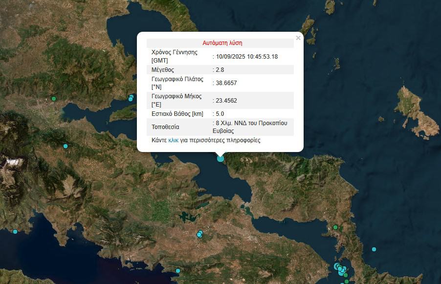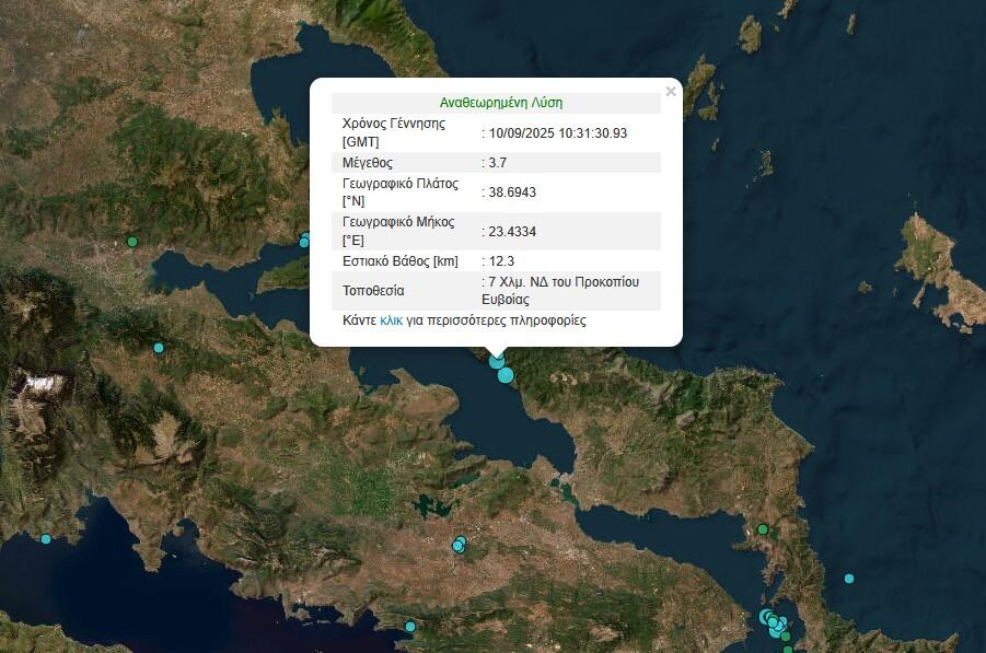 Σεισμός 3,7 Ρίχτερ σημειώθηκε το μεσημέρι της Τετάρτης (10/9) στις 13.31 στην Εύβοια.