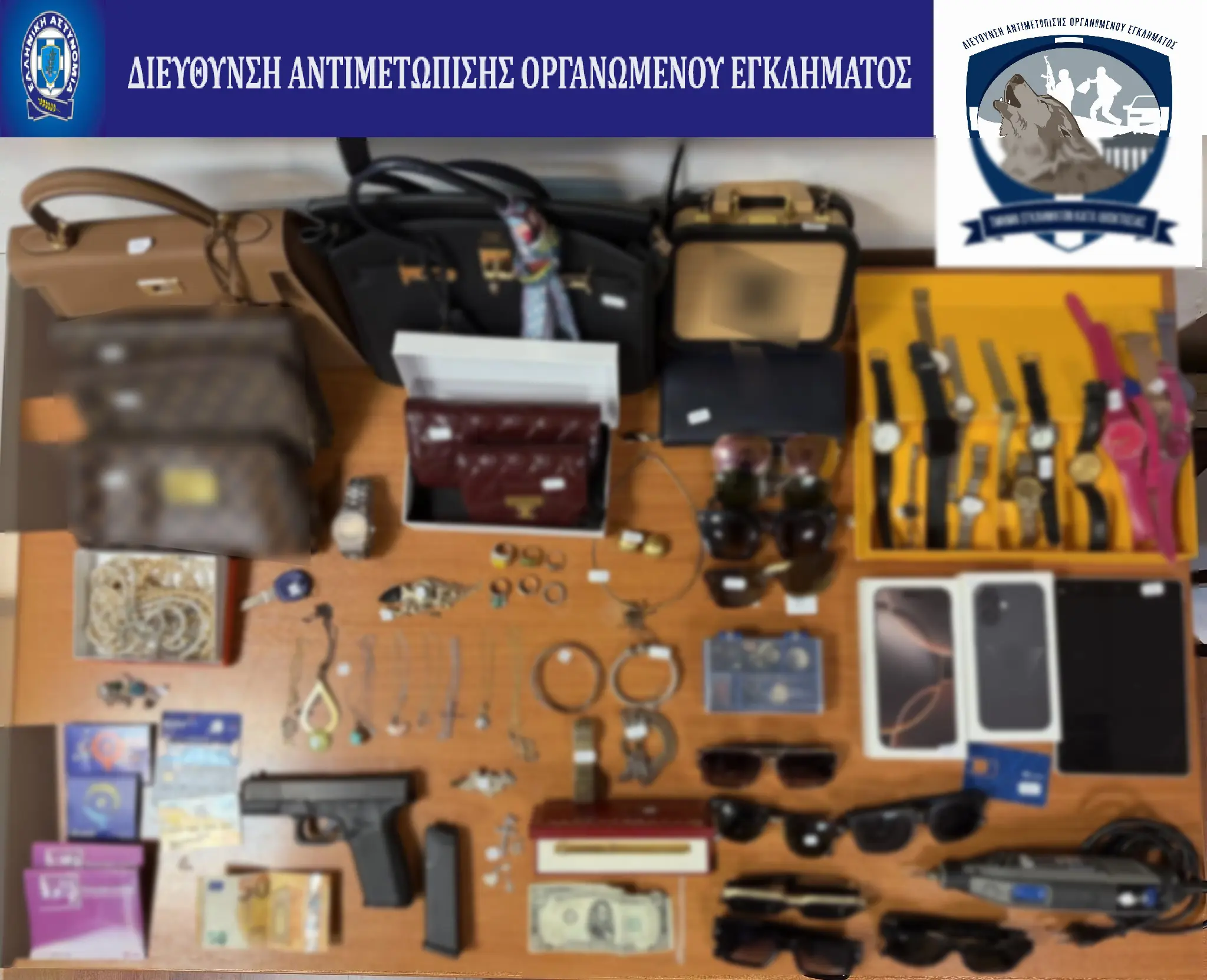 Κατά την έρευνα στην οικία του συλληφθέντος, οι αστυνομικοί εντόπισαν και κατέσχεσαν πλήθος κλοπιμαίων, όπως κοσμήματα, επώνυμες τσάντες και ρολόγια, καθώς και διαρρηκτικά εργαλεία και ένα πιστόλι. Μαζί με τον 20χρονο συνελήφθησαν ένας 23χρονος, ο οποίος είχε εισέλθει παράνομα στη χώρα παρά την απαγόρευση εισόδου που του είχε επιβληθεί, και ένας 42χρονος, σε βάρος του οποίου εκκρεμούσε ποινή κάθειρξης για ληστεία.