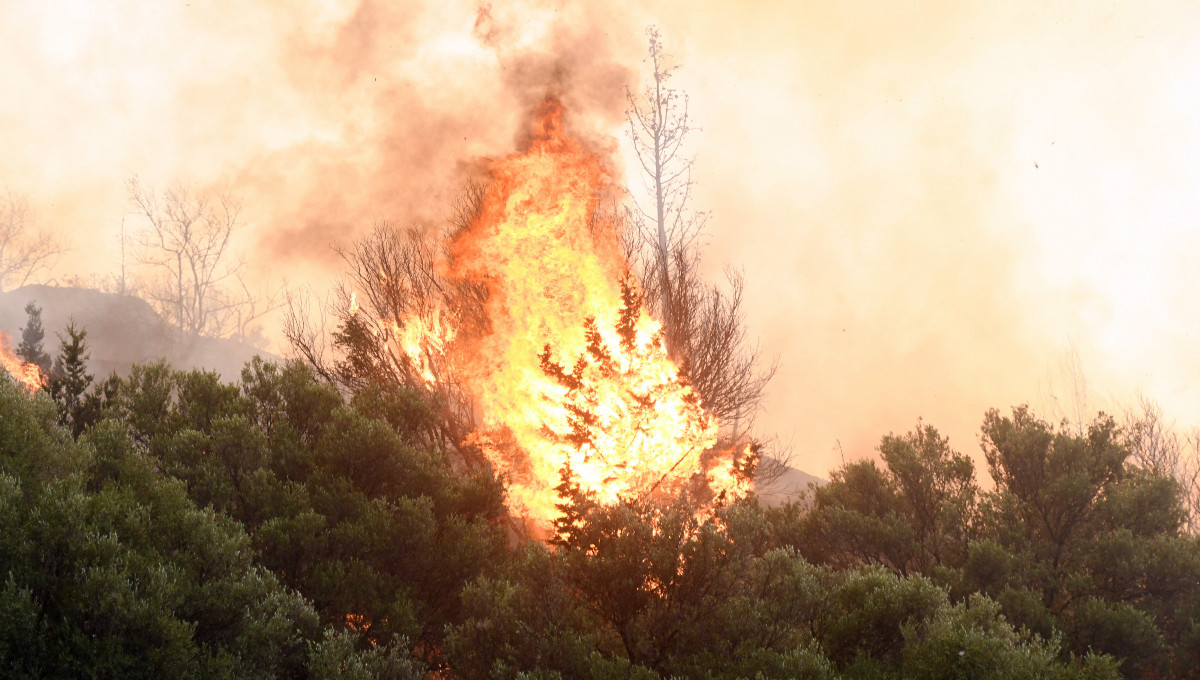 Η φωτιά στην Σπαρτουλιά Ηλείας καίει δύσβατο σημείο στις πλαγιές του Ερυμάνθου, κοντά στην κορυφογραμμή. Δεν απειλούντι οικισμοί.