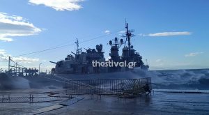 Ισχυρότατοι άνεμοι πνέουν από το πρωί του Σαββάτου στη Θεσσαλονίκη. Θαλασσοταραχή επικρατεί σε όλο τον Θερμαϊκό κόλπο. Τεράστια κύματα χτυπούν το παραλικό μέτωπο. Συναγερμός σήμανε για το πλήρωμα του ιστορικού αντιτορπιλικού “Βέλος”, καθώς τα μανιασμένα κύματα αποτελούν σημαντική απειλή ακόμη και για πιθανή βύθισή του. Για τον λόγο αυτό στο σημείο όπου είναι αγκυροβολημένο το αντιτορπιλικό, κοντά στο Μέγαρο Μουσικής Θεσσαλονίκης, έσπευσε ρυμουλκό σκάφος, το οποίο κρατά ακινητοποιημένο το “Βέλος”.