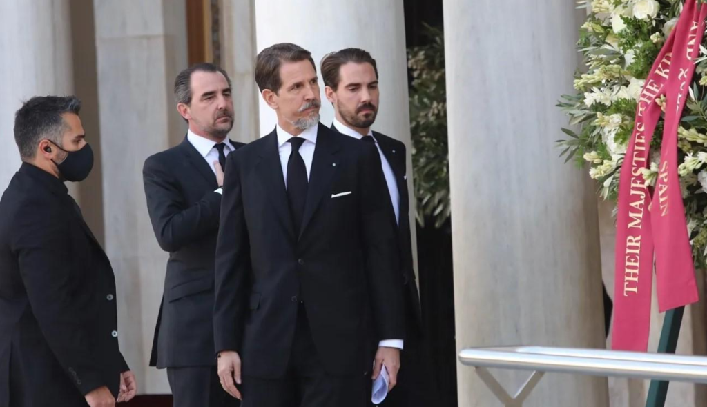 Λίγα λεπτά πριν ολοκληρωθεί το λαϊκό προσκύνημα στη σορό του τέως βασιλιά Κωνσταντίνου, έφτασαν στη Μητρόπολη οι τρεις γιοι του. Ο Παύλος, ο Νικόλαος και ο Φίλιππος κατέφτασαν λίγο πριν από τις 11:00 και έγιναν δεκτοί με χειροκροτήματα από το πλήθος που βρισκόταν εκεί.