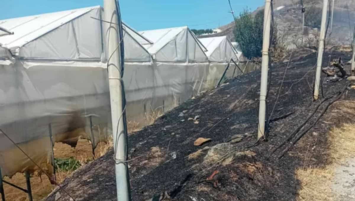 Η φωτιά προκάλεσε ζημιές σε δύο θερμοκήπια και παρά το ότι πλησίασε τα λιγοστά σπίτια της περιοχής, οι πυροσβέστες ανέκοψαν την πορεία της προς αυτά.