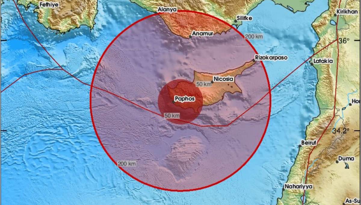 Ο σεισμός έγινε σε απόσταση 14 χιλιομέτρων ανατολικά βορειοανατολικά της Πάφου και είχε εστιακό βάθος 12 χιλιομέτρων.