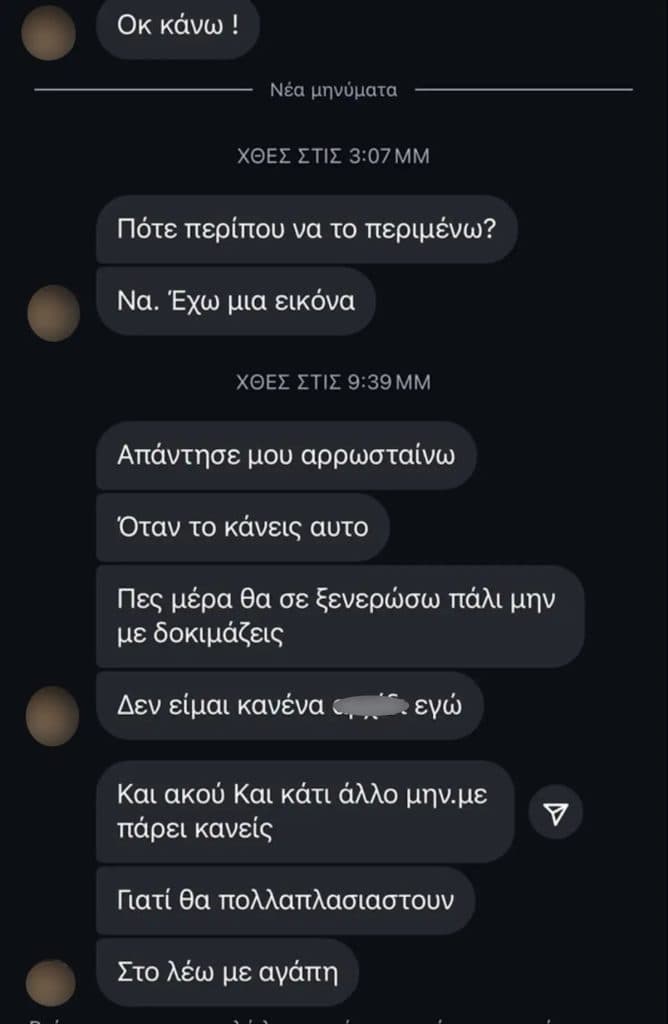 «Αύριο θέλω το χρήμα», έγραψε σε μήνυμά του ο 33χρονος απαγωγέας, ενώ από την πλευρά του το θύμα απάντησε: «Μετά από τόσα που πήρες δεν μπορείς να κάνεις λίγο υπομονή; Σου είπα θα στο δώσω».