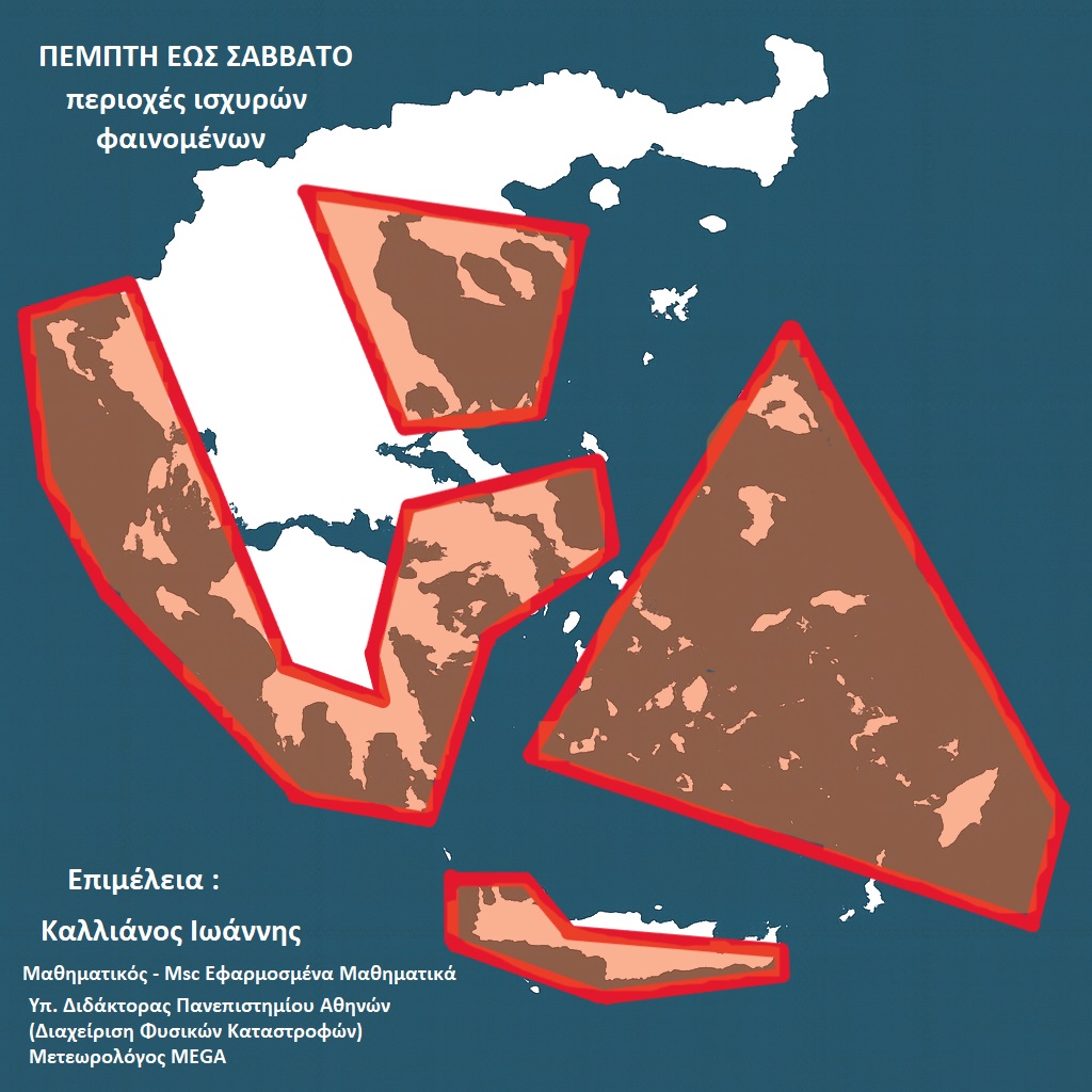 Περιοχές όπου αναμένονται τα ισχυρότερα φαινόμενα :