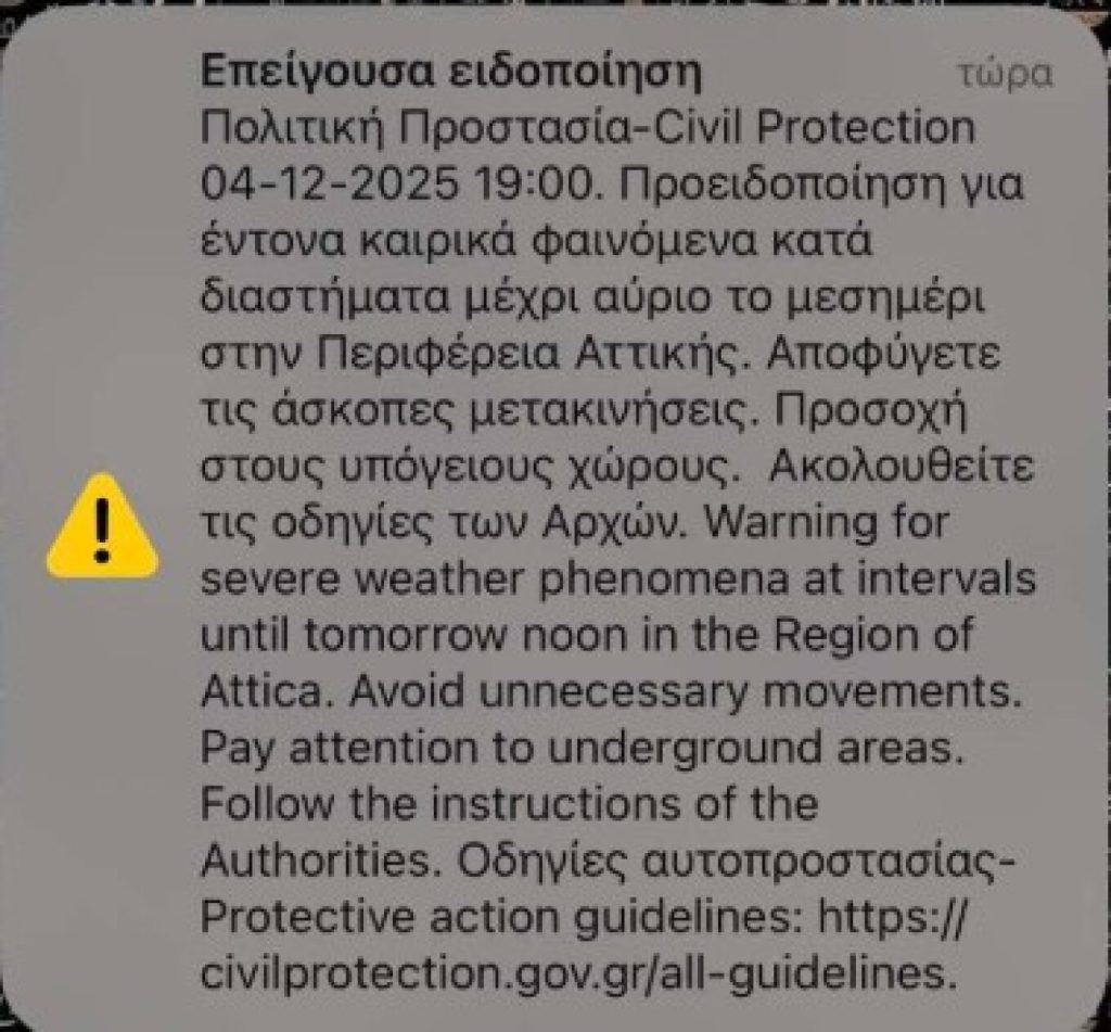 Μήνυμα 112 σήμανε στην Αττική «αποφύγετε τις άσκοπες μετακινήσεις»