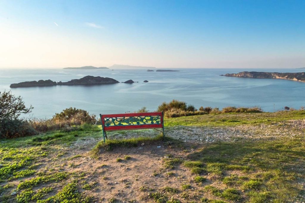 Όσοι πάλι επιλέξουν να δουν τη θέα από ψηλά, αυτή είναι σαγηνευτική, καθώς φτάνει από τη βραχονησίδα Γραβιά, στα Διαπόντια νησιά, δεξιά στον κόλπο του Αρίλλα και αριστερά στον κόλπο του Αγίου Γεωργίου, ενώ το ηλιοβασίλεμα είναι ανεπανάληπτο, με τον ήλιο να παίρνει κάθε βράδυ μαζί του, όλα τα μυστικά του μοναδικού ακρωτηρίου της Κέρκυρας.