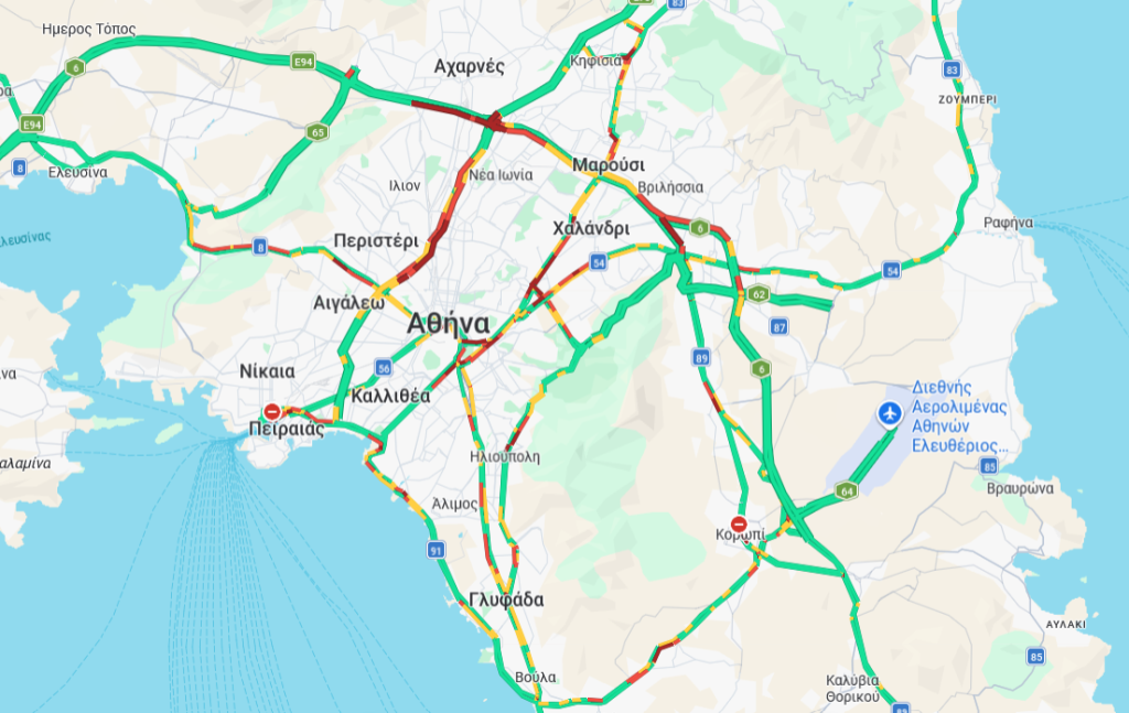 Ιδιαίτερα αυξημένη είναι σήμερα, Παρασκευή 6 Φεβρουαρίου, η κίνηση στο οδικό δίκτυο της Αττικής, με την Αθηνών – Κορίνθου να βρίσκεται στο «κόκκινο» και την Αθηνών – Λαμίας να έχει κυκλοφοριακή συμφόρηση μέχρι τον κόμβο Καλυφτάκη.