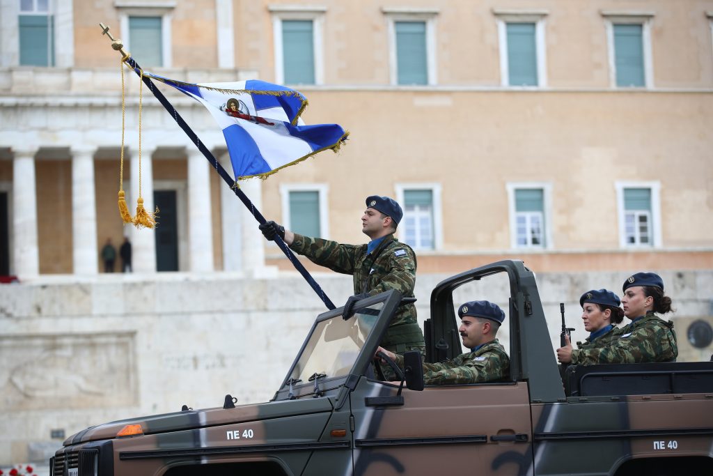 Στις 08:00 το πρωί, πραγματοποιήθηκε η επίσημη έπαρση της Εθνικής Σημαίας στον Ιερό Βράχο της Ακρόπολης.