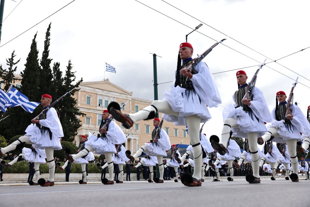 Η παρέλαση των Ενόπλων Δυνάμεων και των Σωμάτων Ασφαλείας, μπροστά από το Μνημείο Αγνώστου Στρατιώτη, για τον εορτασμό της εθνικής επετείου της 25ης Μαρτίου 1821 ξεκίνησε σήμερα, λίγο λεπτά μετά τις 11:00 π.μ. ενώπιον του Προέδρου της Ελληνικής Δημοκρατίας Κωνσταντίνου Τασούλα.