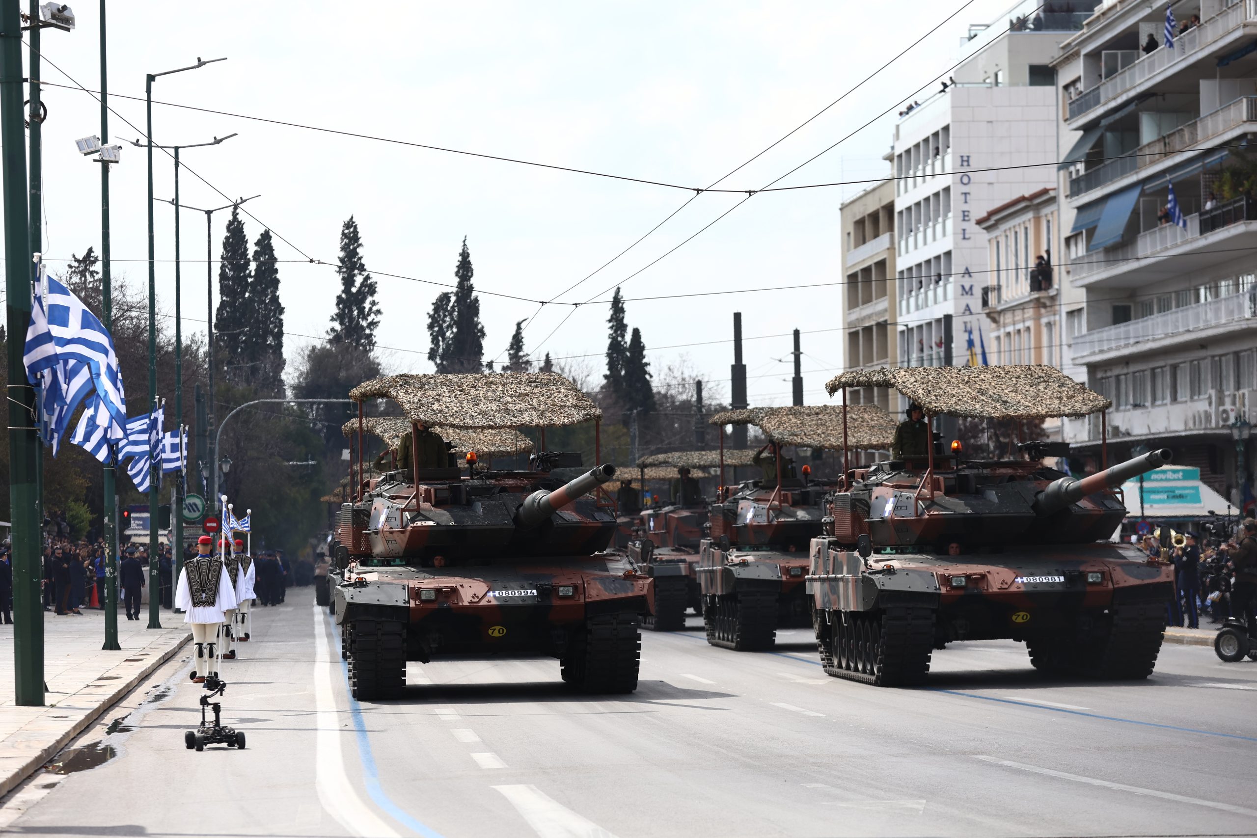 Η παρέλαση των Ενόπλων Δυνάμεων και των Σωμάτων Ασφαλείας, μπροστά από το Μνημείο Αγνώστου Στρατιώτη, για τον εορτασμό της εθνικής επετείου της 25ης Μαρτίου 1821 ξεκίνησε σήμερα, λίγο λεπτά μετά τις 11:00 π.μ. ενώπιον του Προέδρου της Ελληνικής Δημοκρατίας Κωνσταντίνου Τασούλα.