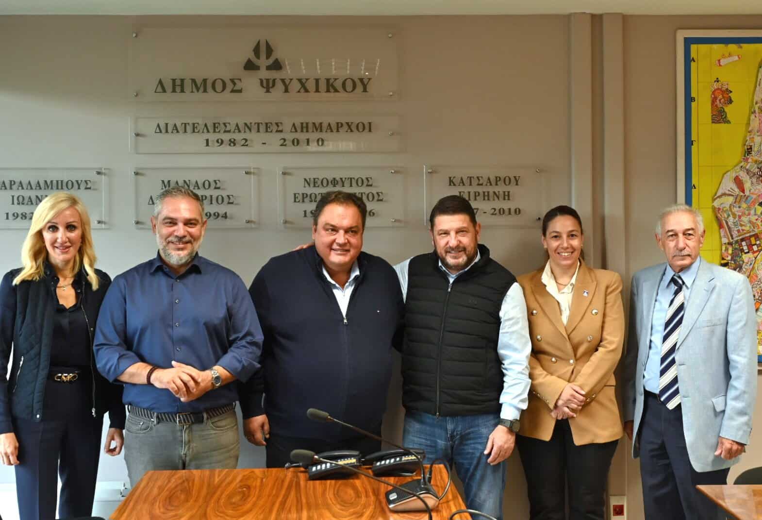 Στο πλαίσιο των καθημερινών επισκέψεών του και στους 66 Δήμους της Αττικής, ο Περιφερειάρχης Αττικής Νίκος Χαρδαλιάς βρέθηκε στον Δήμο Φιλοθέης – Ψυχικού, όπου είχε συνάντηση εργασίας με τον Δήμαρχο Χαράλαμπο Μπονάτσο, με τον οποίο συζήτησαν για τα έργα υποδομής που θα υλοποιηθούν από την Περιφέρεια στην περιοχή.
