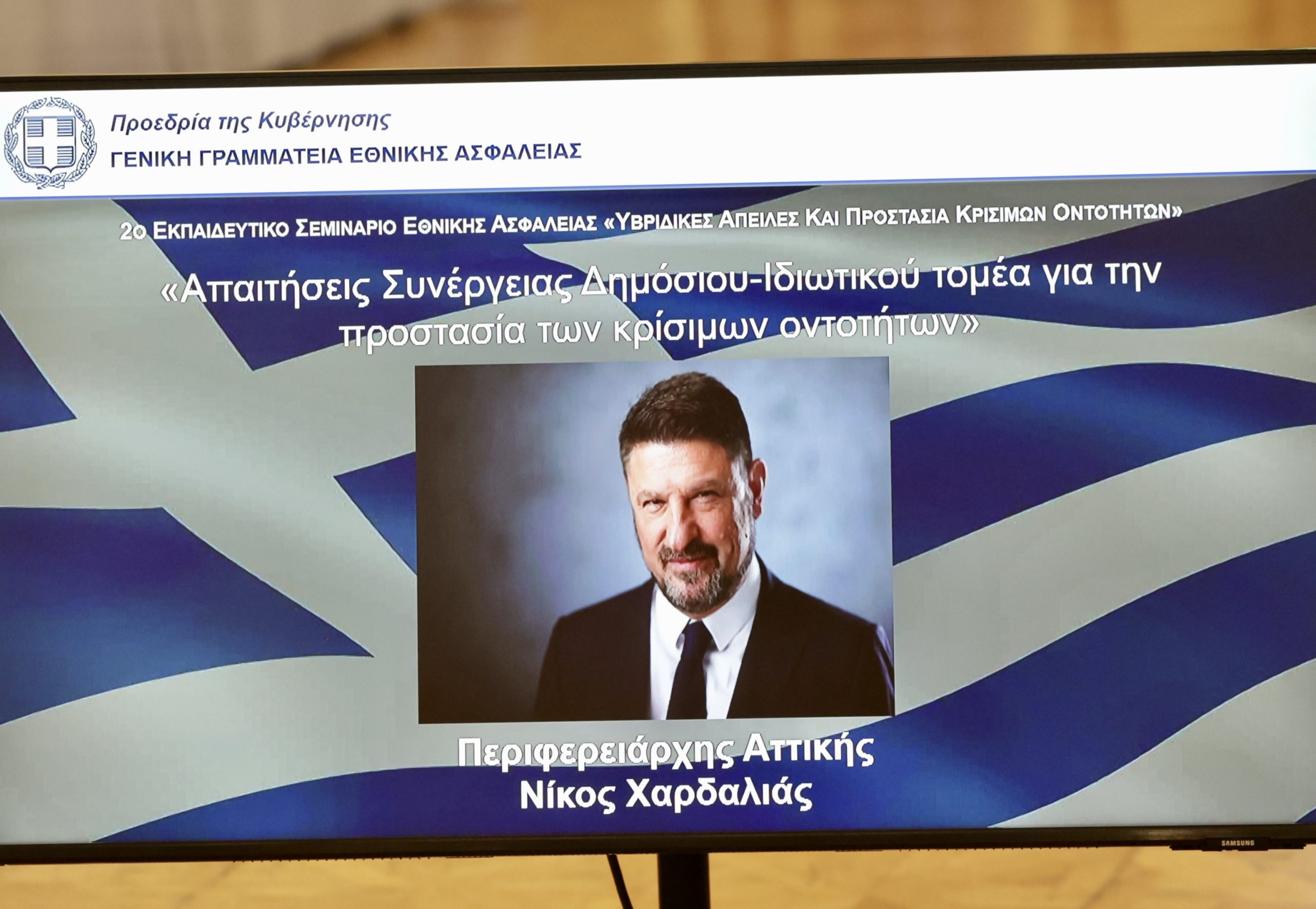 Στην ανάγκη προσαρμογής των σχεδίων άμυνας και πολιτικής προστασίας στη διαρκώς μεταβαλλόμενη φύση των σύγχρονων απειλών, αλλά και στην ενίσχυση της ανθεκτικότητας των κρατών, των υποδομών και των κοινωνιών μέσα από συντονισμένες δράσεις, αναφέρθηκε ο Περιφερειάρχης Αττικής Νίκος Χαρδαλιάς κατά τη διάρκεια της ομιλίας του στο 2ο Εκπαιδευτικό Σεμινάριο της Γενικής Γραμματείας Εθνικής Ασφάλειας με τίτλο «Οι Υβριδικές Απειλές και η Προστασία των Κρίσιμων Οντοτήτων», που διεξήχθη στη ΛΑΕΔ.