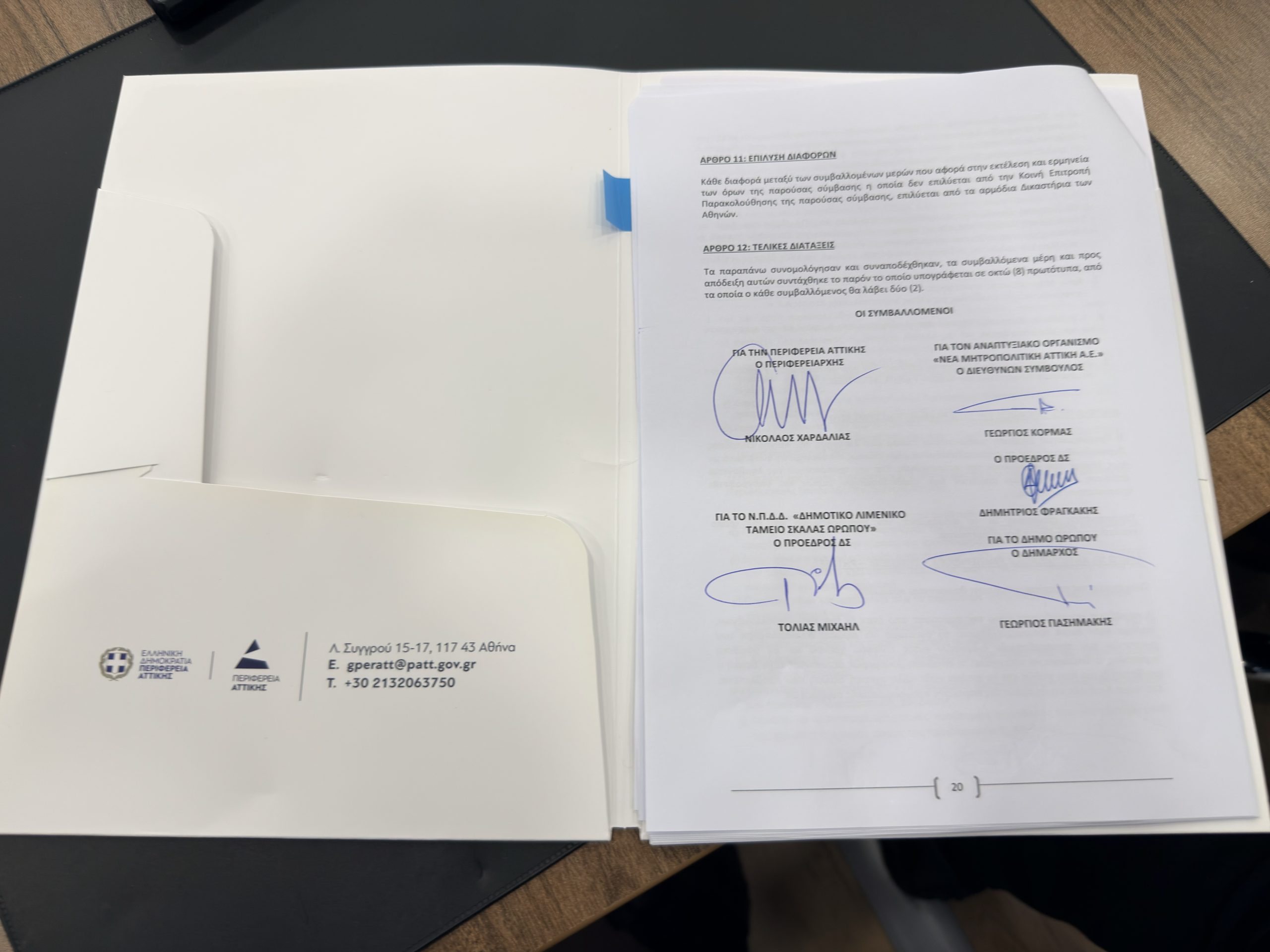 Εκ μέρους της Περιφέρειας Αττικής, το «παρών» στην υπογραφή της σύμβασης πέραν των προαναφερθέντων έδωσαν η Ειδική Γραμματέας Έλενα Ράπτη, η Γενική Διευθύντρια του Αναπτυξιακού Οργανισμού Τοπικής Αυτοδιοίκησης «Νέα Μητροπολιτική Αττική Α.Ε.», Έφη Φιλιοπούλου και η Διευθύντρια Αναπτυξιακού Προγραμματισμού, Μαίρη Μίσκα.