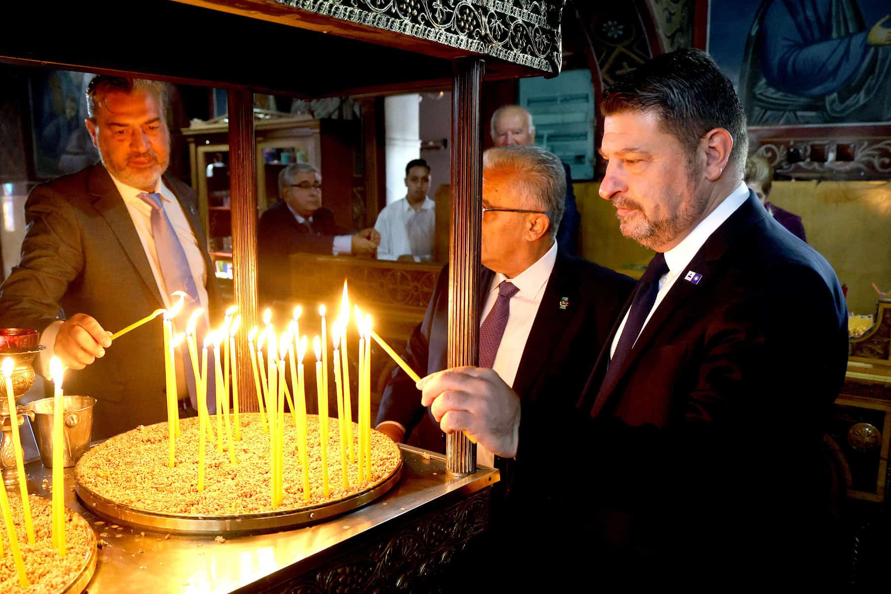 Νωρίτερα το πρωί, ο κ. Χαρδαλιάς παρακολούθησε τη Δοξολογία στον Ιερό Ναό Παναγίας Ελεούσης στην Αγία Βαρβάρα και παρέστη, μαζί με τον Δήμαρχο της πόλης Λάμπρο Μίχο, στην επιμνημόσυνη δέηση στην πλατεία Ηρώων, όπου κατέθεσε στεφάνι.