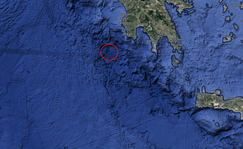 Παρακάτω είναι το σημείο που εντοπίστηκε το βυθισμένο αλιευτικό, σε διεθνή ύδατα ανοιχτά της Πύλου.