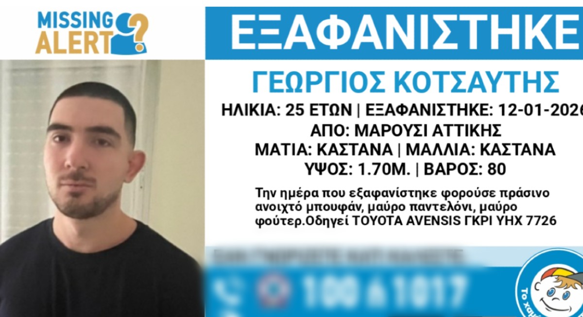 Νεκρός εντοπίστηκε ο 25χρονος Γιώργος Κοτσαύτης, τα ίχνη του οποίου είχαν χαθεί από το Μαρούσι στις 12 Ιανουαρίου 2026.