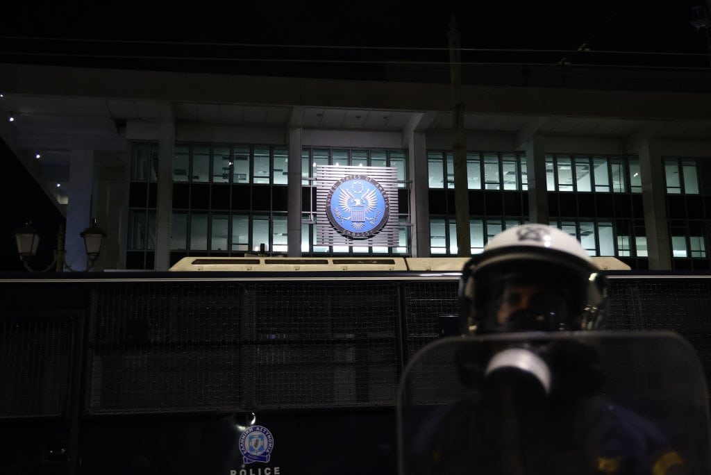 Στην αμερικανική πρεσβεία έφτασε λίγο μετά το μπλοκ των φοιτητών με την αιματοβαμμένη σημαία του Μετσοβίου.