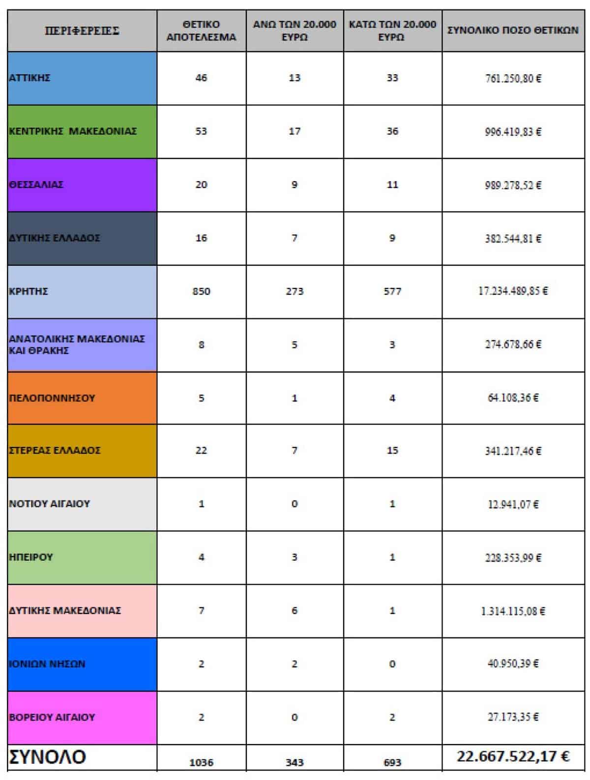 Σύνολο Ποσό Θετικών: 22.667.522,17 €